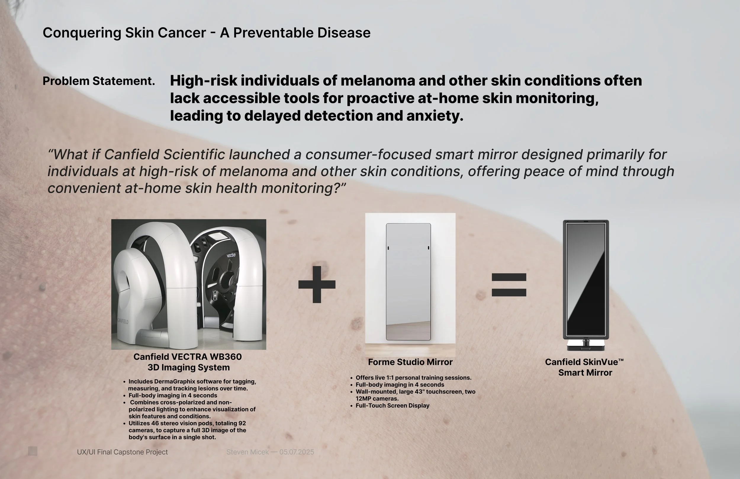 High-risk individuals of melanoma and other skin conditions often lack accessible tools for proactive at-home skin monitoring, leading to delayed detection and anxiety.